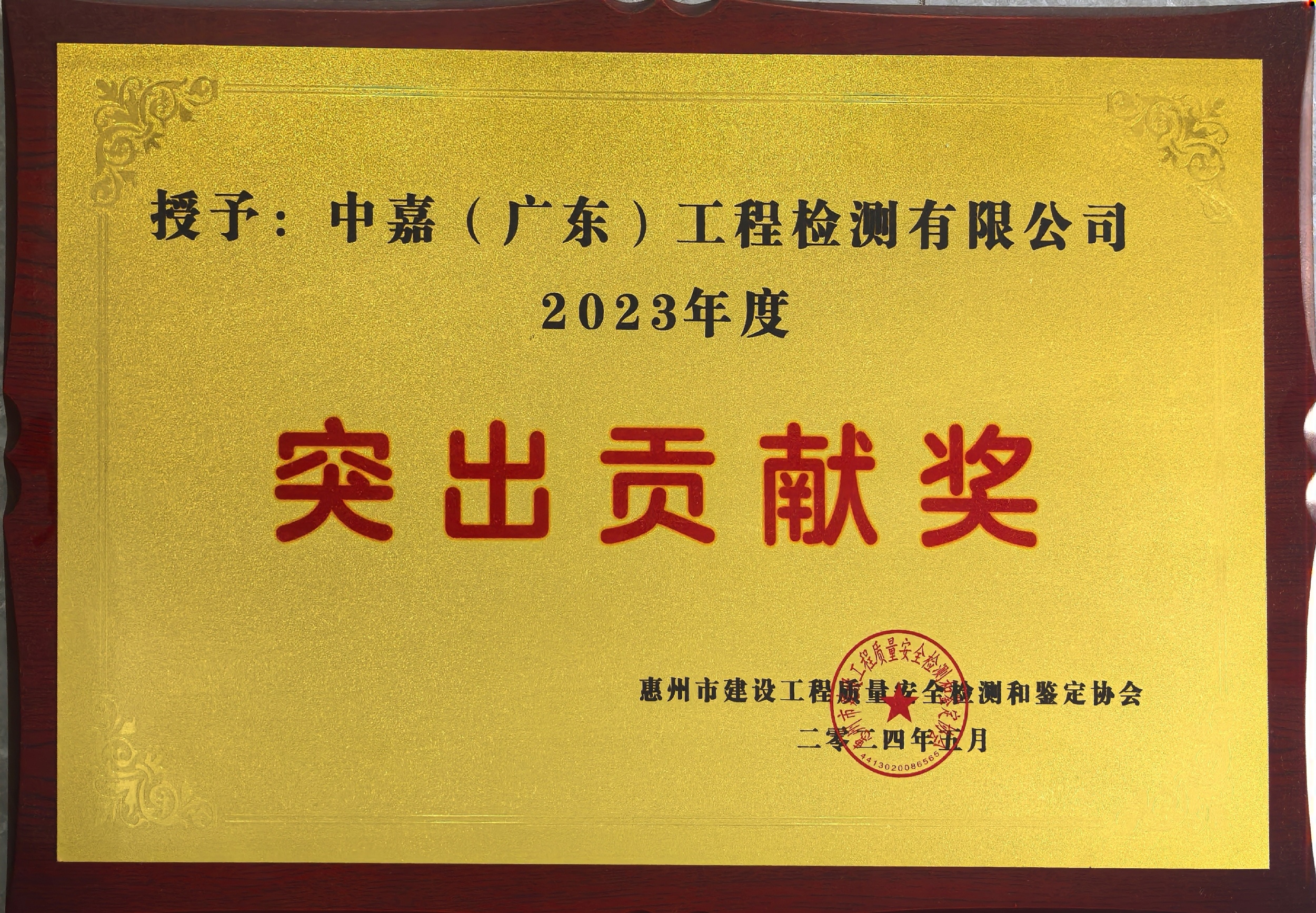 獲得惠州市2023年度試驗檢測機構(gòu)突出貢獻獎